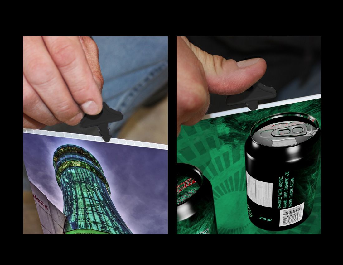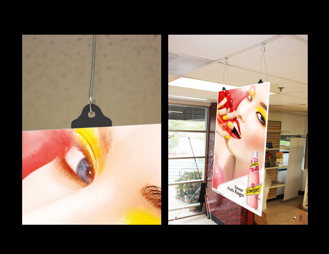 Simply press the spike-end into the edge of the coro material so that it penetrates the corrugated flutes, then hang it up